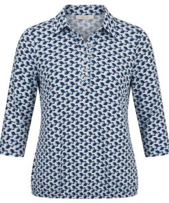 Sensia Dames Poloshirt met Kraag – Blauw Geometrisch Dessin