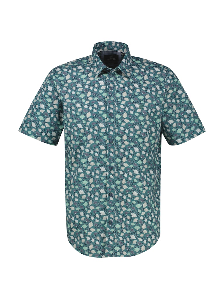 Lerros Overhemd Groen Gebloemd – Katoenen Shirt Korte Mouw – Regular Fit