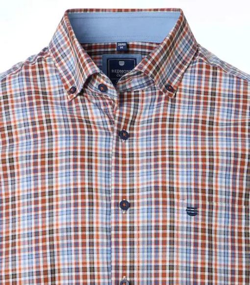 Corin Overhemd Klittenband Geruit Oranje – Regular Fit – 100% Zacht Katoen