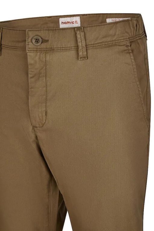 Hattric Harvey Heren Broek Camel Modern Fit – Comfort Stretch Gabardine