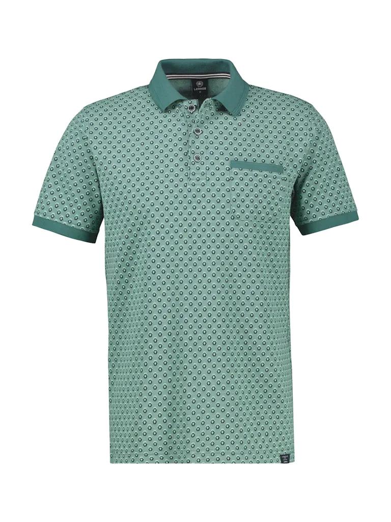 Lerros Heren Poloshirt Groen – Katoenen Polo met Print en Borstzak – Rechte Pasvorm
