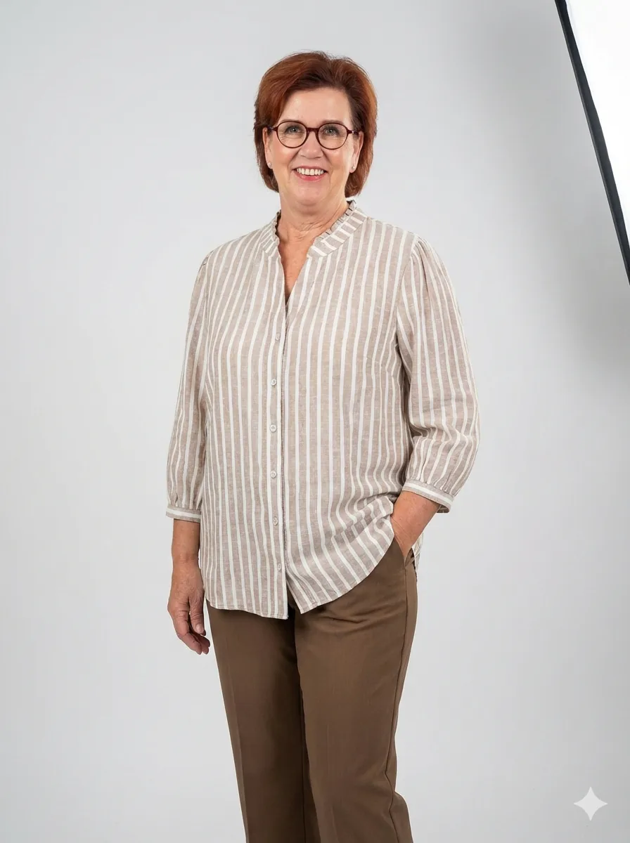 Brax blouse mokka gestreept - Linnen Mix