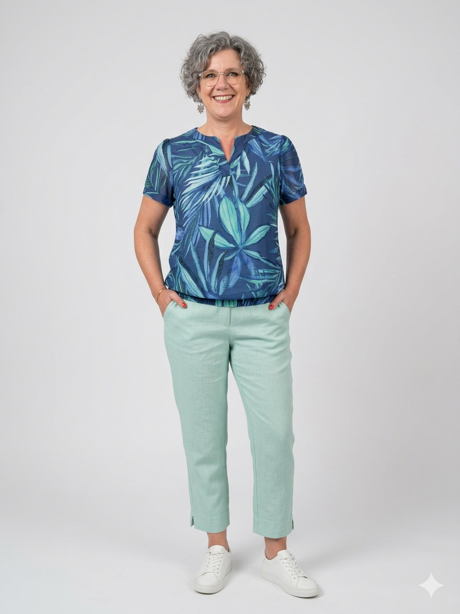 Leona per Donna Shirt - Blauw Groen - Botanische Print