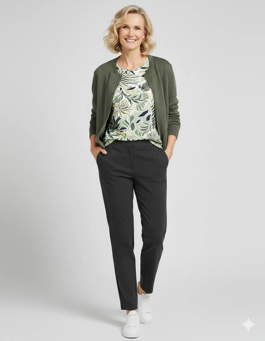 Gabriella K Dames Shirt - groen /beige - Korte Mouw