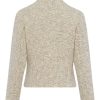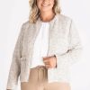 Frank Walder dames blazer gemeleerd beige marineblauw met rafeldetails en rijke structuur