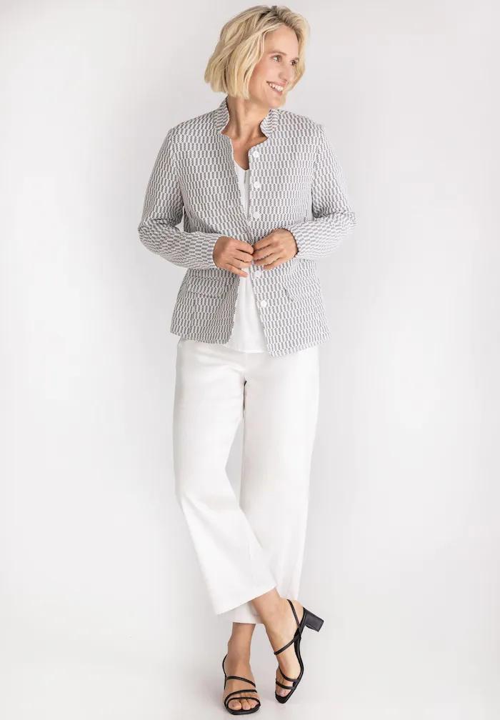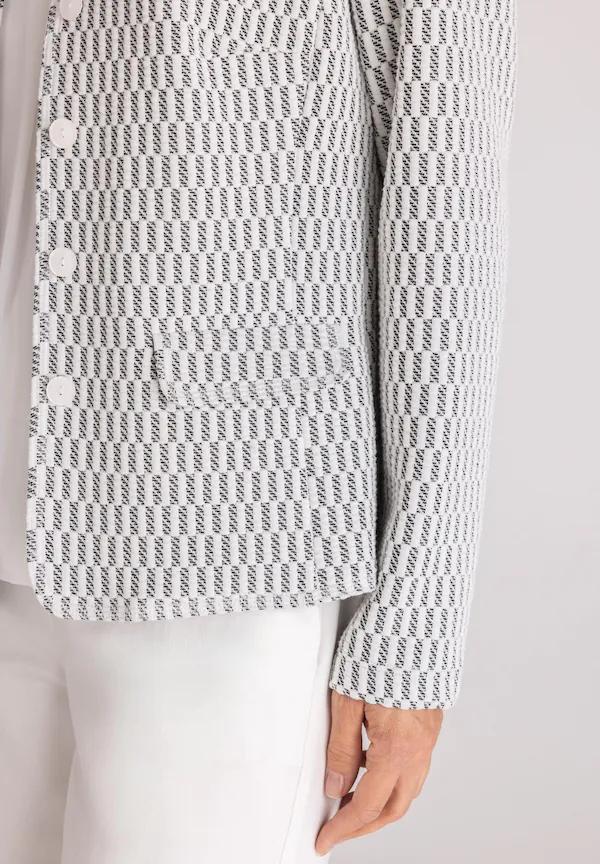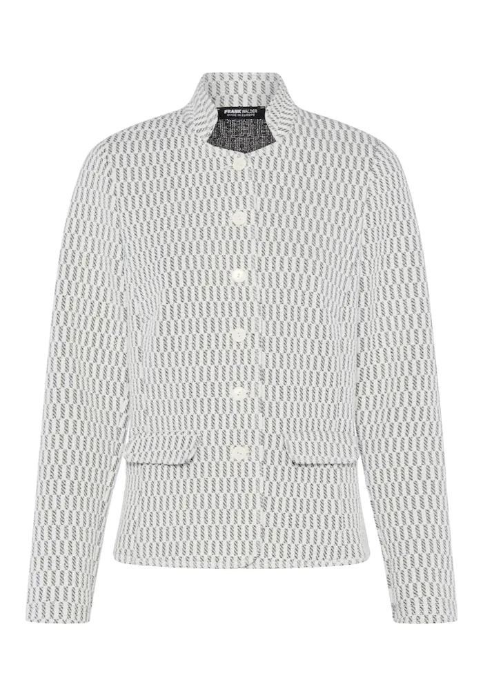 Frank Walder Blazer Grijs Wit – Getailleerd Jasje met Glansdetail en Opstaande Kraag