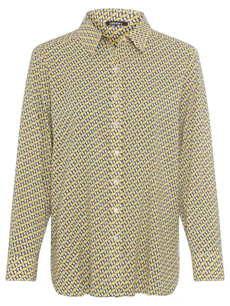 Voeg een speels en kleurrijk accent toe aan uw garderobe met deze stijlvolle blouse van Olsen. De gele en marinekleurige print geeft uw outfit een vrolijke en frisse uitstraling. De doorlopende knoopsluiting en klassieke kraag zorgen voor een elegante afwerking, perfect voor zowel zakelijke als casual gelegenheden.