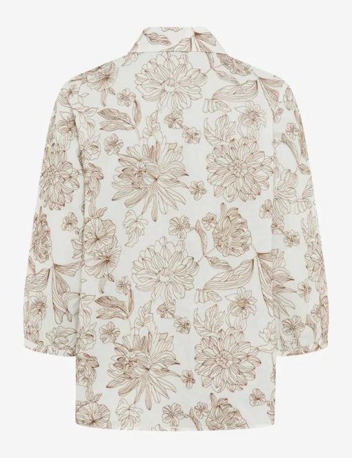 Brax Vicky Blouse – Katoen – Gebloemd Dessin – Off White/Bruin – Driekwart Mouw