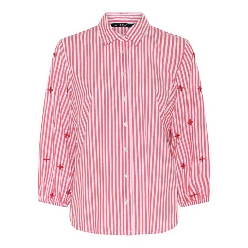 Micha Blouse Rood-Wit Gestreept – Comfortabele Driekwart Mouw – Stretch Katoen