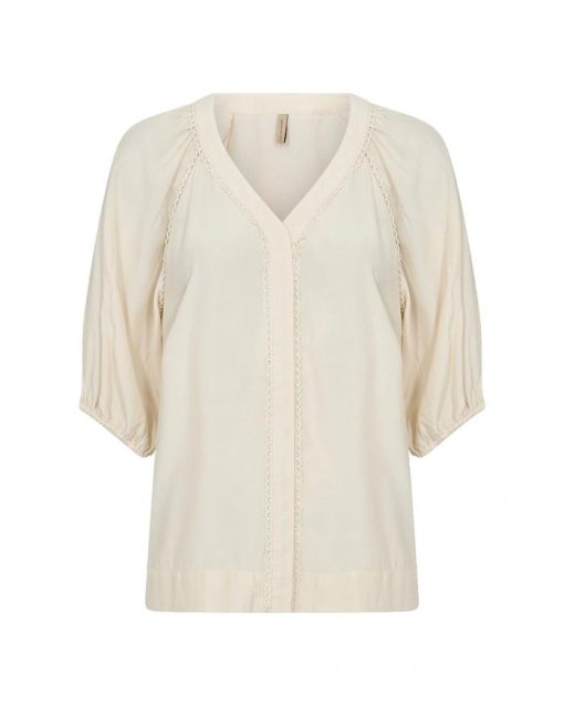 Soyaconcept SC-BARBEL 4 Blouse Creme – Duurzame V-hals Top met Broderie Details