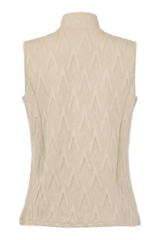 Sunday Gilet Zand – Dames Bodywarmer met Reliëf Motief en Ritssluiting