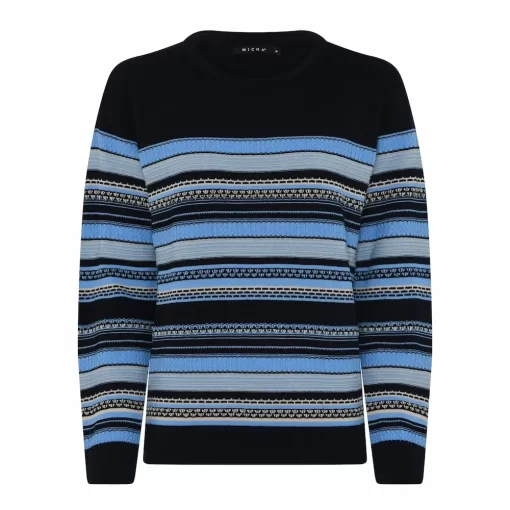 De jumper Micha in marine en blauw is de perfecte aanvulling op uw garderobe. Deze trui combineert een moderne uitstraling met heerlijk draagcomfort. Het stijlvolle streeppatroon in blauw, marine en zachte neutrale tinten geeft een frisse, levendige look. Perfect voor zowel dagelijkse momenten als een nette gelegenheid.