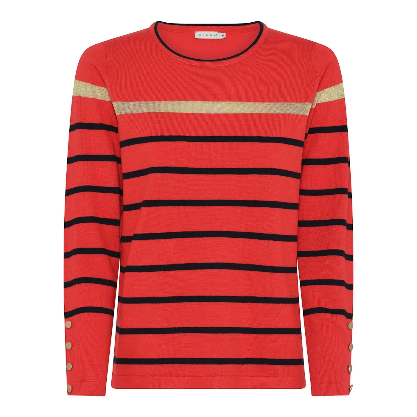 MICHA Pullover Rood met Verticale Strepen – Dames Trui – Ronde Hals