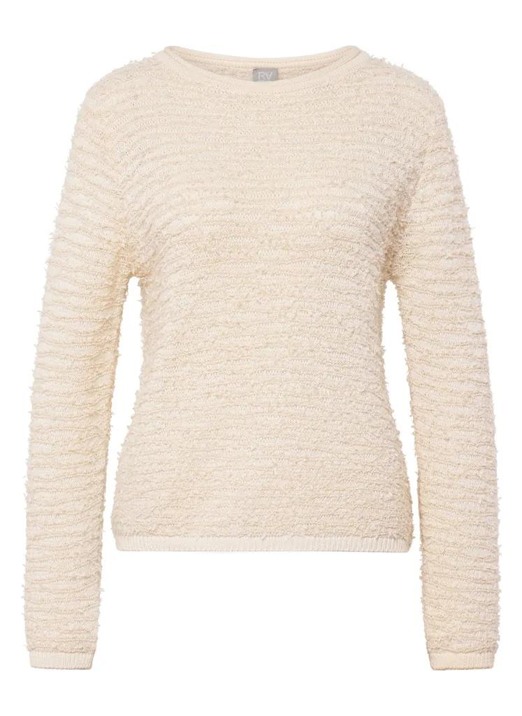 Rabe Trui Beige – Getextureerde Dames Sweater – Ronde Hals – Lange Mouw