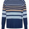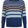 Sunday Gestreepte Trui Blauw/Taupe – Zachte Damestrui met Split | 75% Viscose