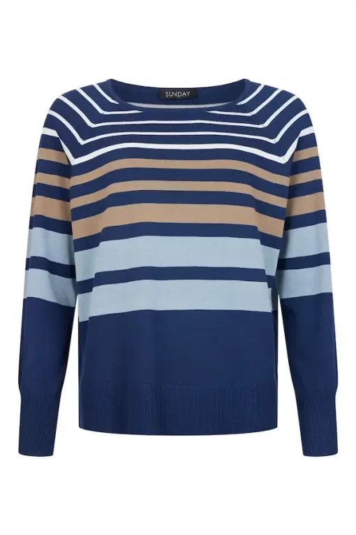 Deze Sunday trui in blauw en taupe gestreept design is de perfecte balans tussen comfort en stijl. Het zachte, soepele materiaal zorgt voor een heerlijk draaggevoel, terwijl het kleurenspel in horizontale strepen zorgt voor een moderne, casual uitstraling. Met een subtiel zijsplitje voor extra bewegingsvrijheid en een verfijnde afwerking aan de zoom.