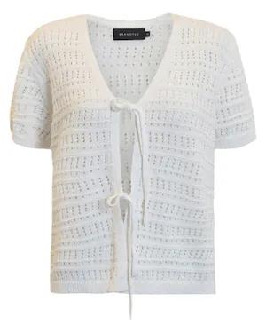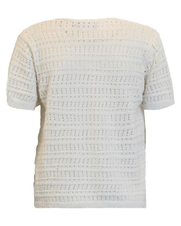 Brandtex Vest Off-White Korte Mouwen – Fijngebreid met Strikdetail – Katoenmix