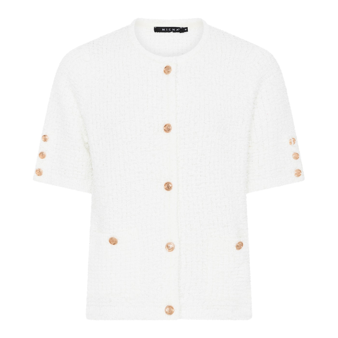 Micha Vest Wit met Gouden Knopen – Chique Korte Mouw – Luxe Franje Afwerking