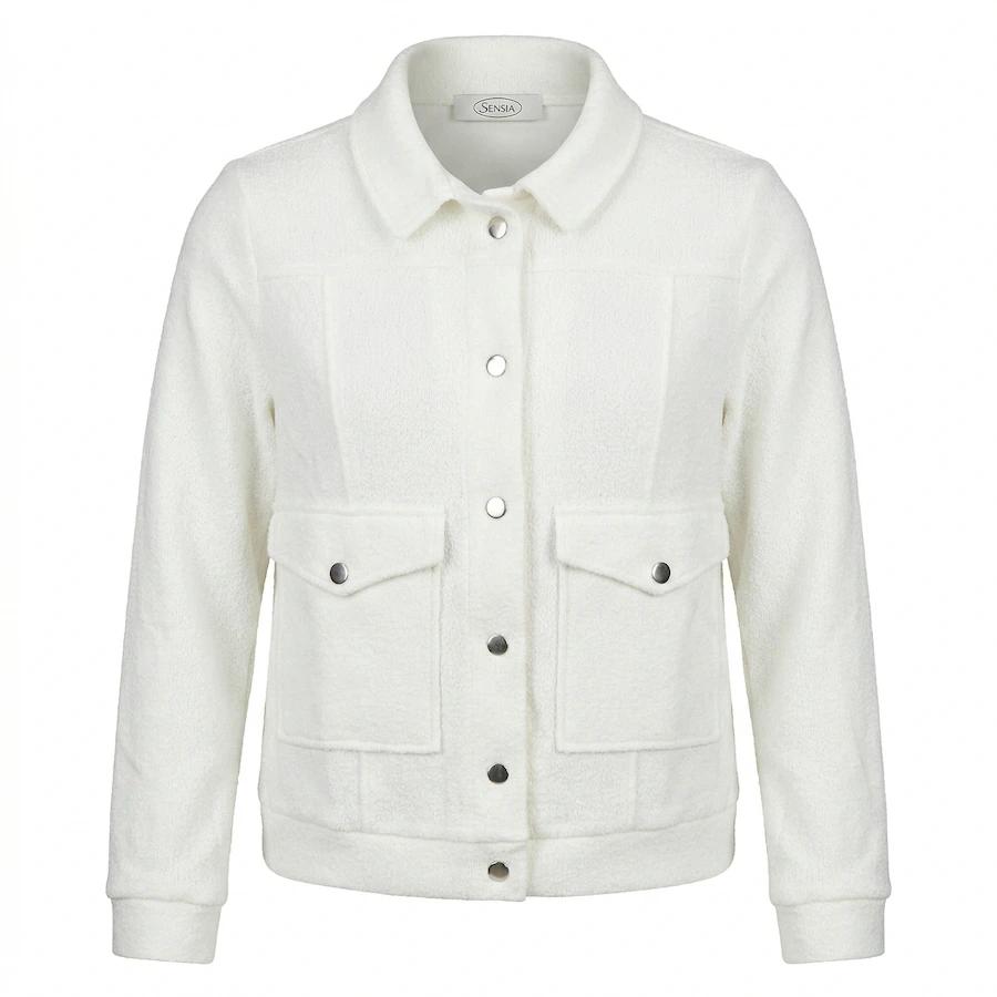 Sensia Jasje Richelle Wolwit – Comfortabel Bombermodel met kraag