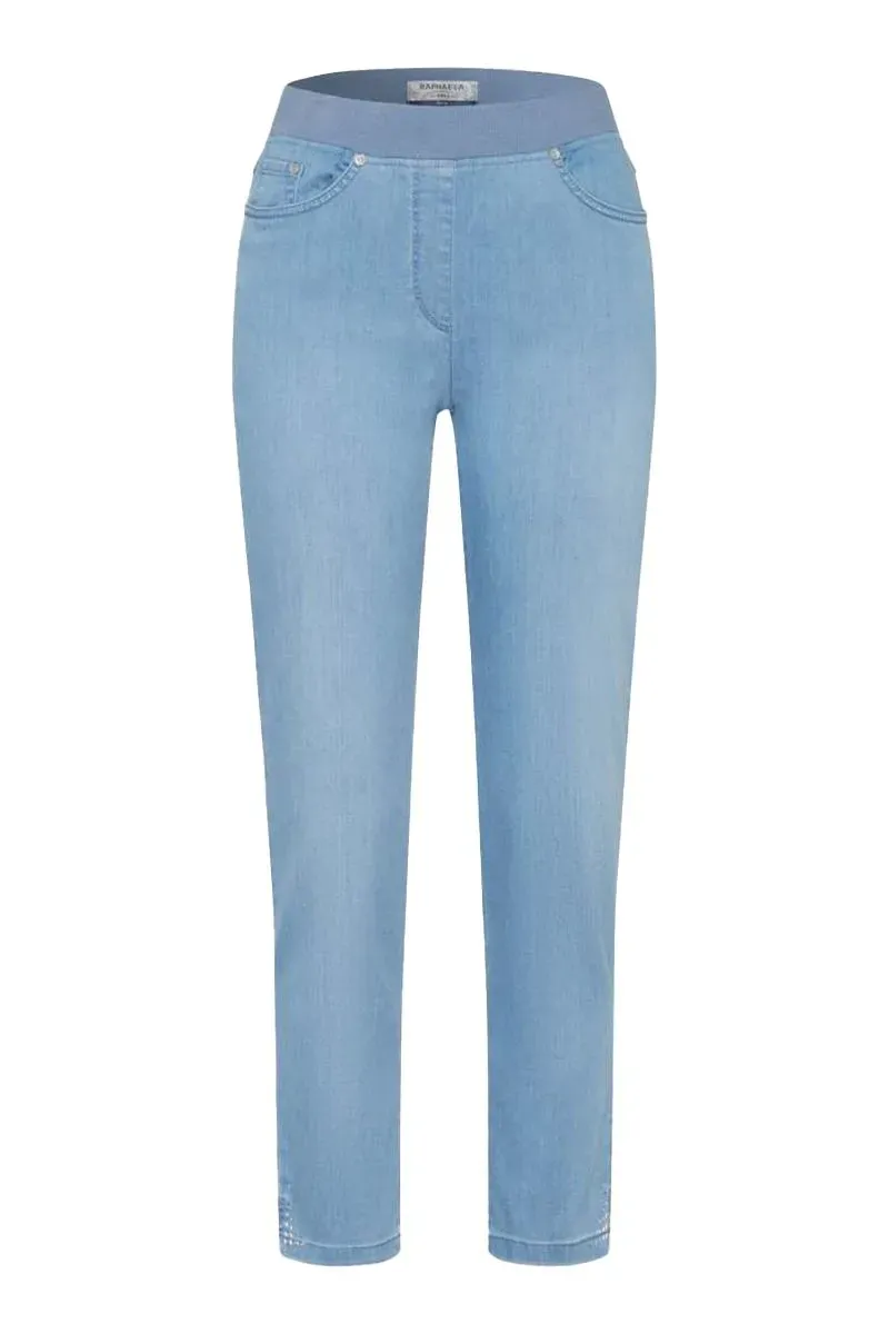 Lichtblauwe 6/8 Raphaella by Brax Pamina Deko jeans met Swarovski kristallen bij het splitje