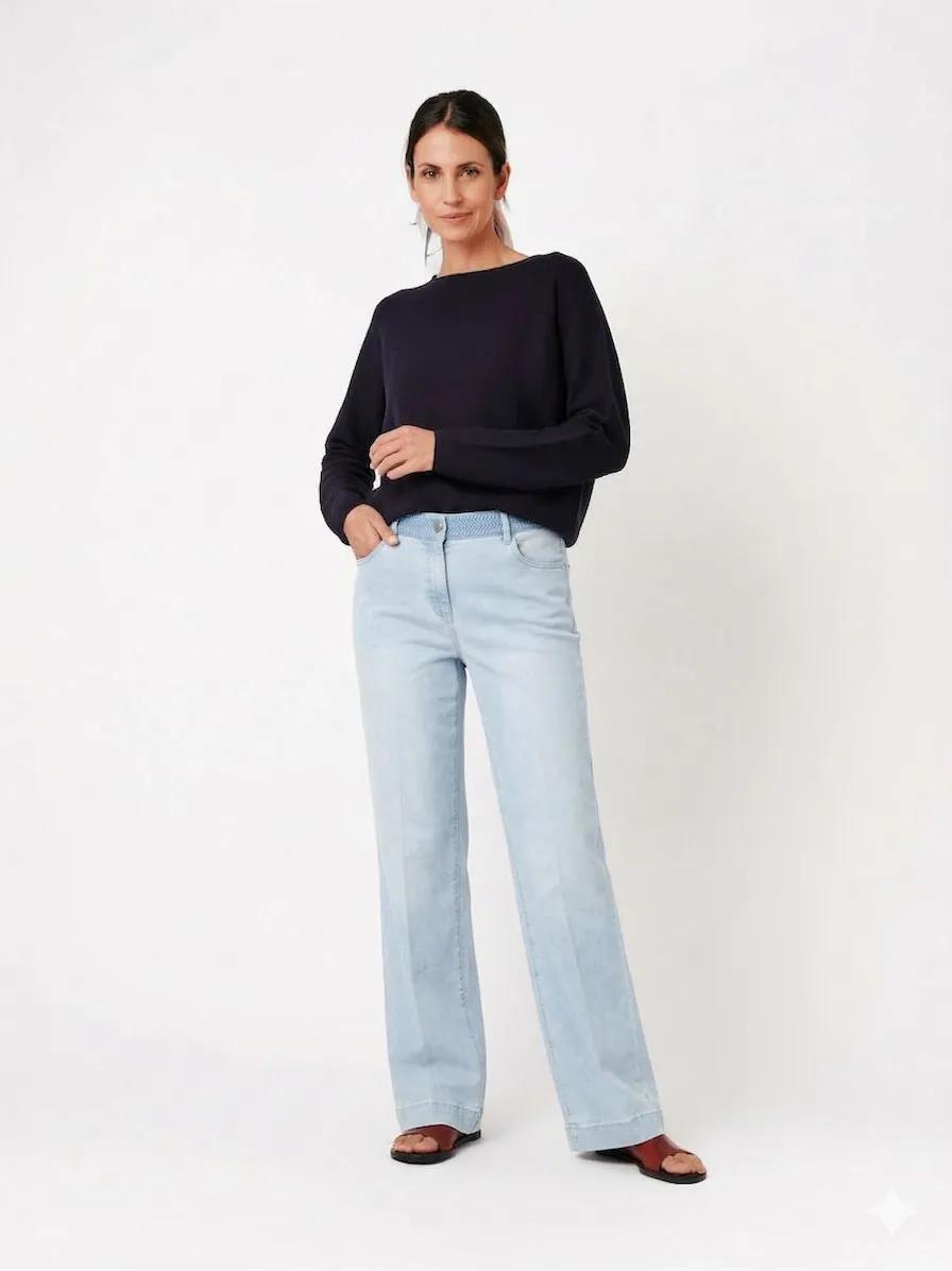 Toni Jeans Jenny Wide Leg Blauw – Stretch Denim met Deels Elastische Band