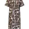 Brandtex Jurk Bruin Dessin – Luchtige Linnenmix – Midi Tuniekjurk met Knoopdetail