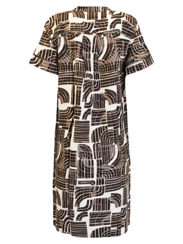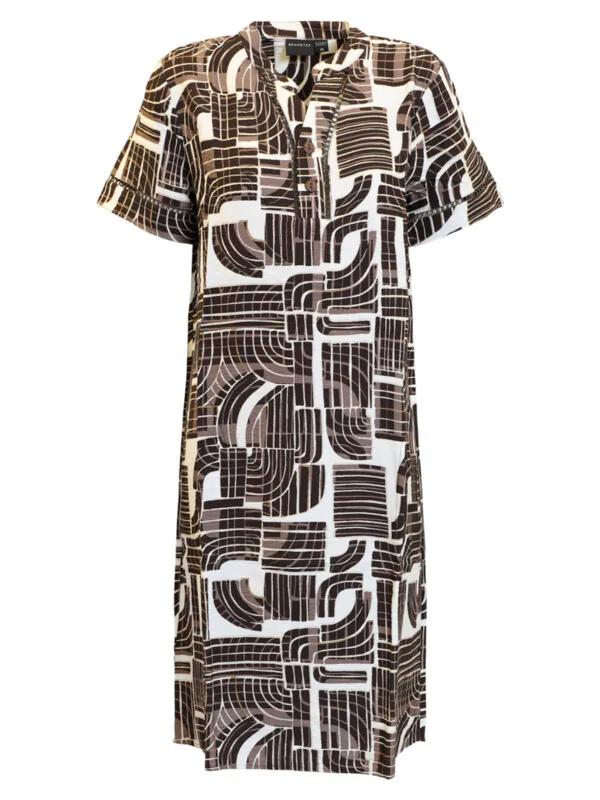 Brandtex Jurk Bruin Dessin – Luchtige Linnenmix – Midi Tuniekjurk met Knoopdetail