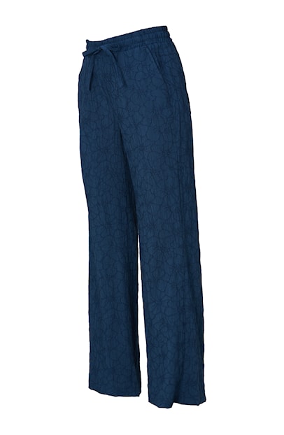 - Subtiel borduursel: De broek is verfijnd afgewerkt met geborduurde bloemen in dezelfde kleurtoon, wat zorgt voor een rijke en luxe uitstraling.