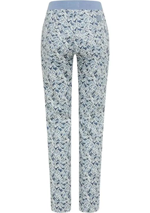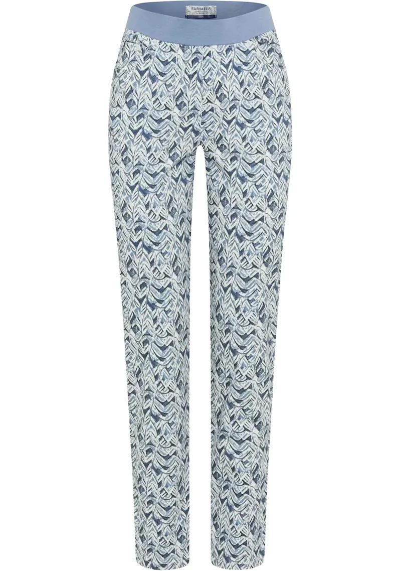 Raphaella by Brax Pamina 6/8 damesbroek met blauw grafisch dessin en comfortabele elastische tailleband