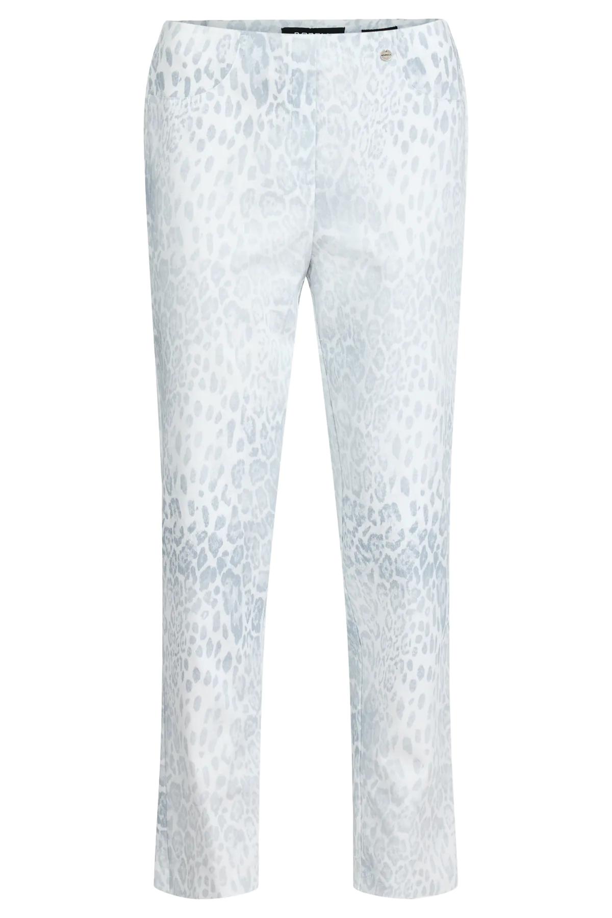 Robell Broek met Panterprint Wit – Stretch Pants met Kontzakken – Katoenmix