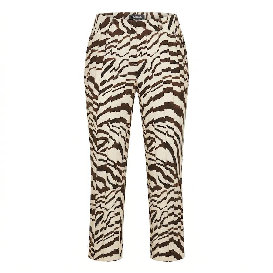 Robell Rose09 Stretchbroek – Dames Bengaline Broek met Zebraprint – Bruin/Beige
