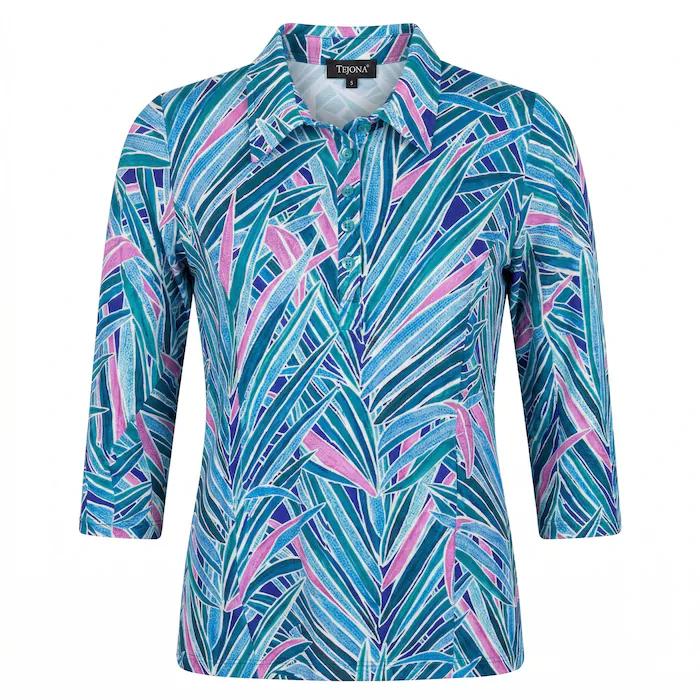 Leona per Donna Poloshirt – 3/4 Mouw – Smaragdgroen – Botanische Bladprint