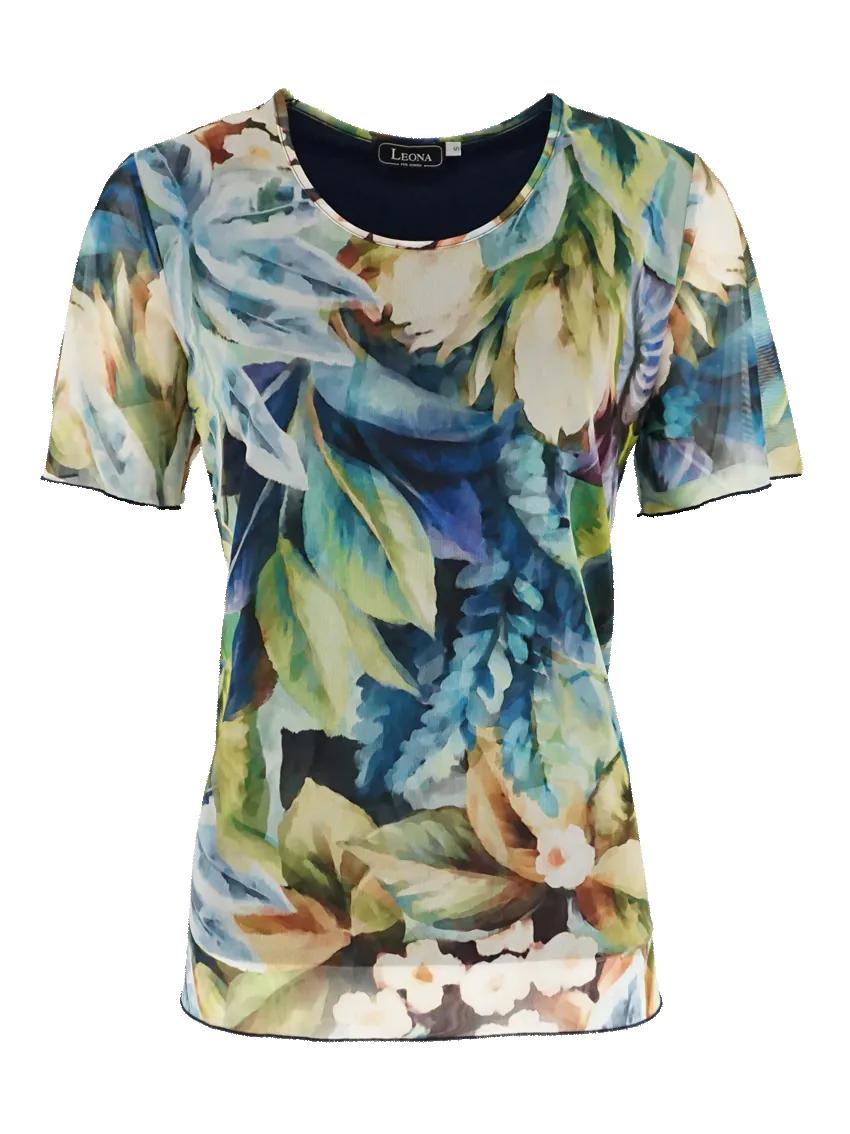 Leona per Donna Shirt – Dubbellaags Mesh – Groen Blauw Gebloemd