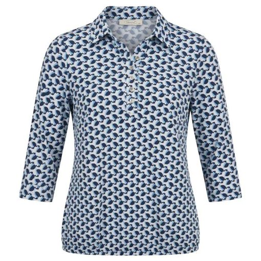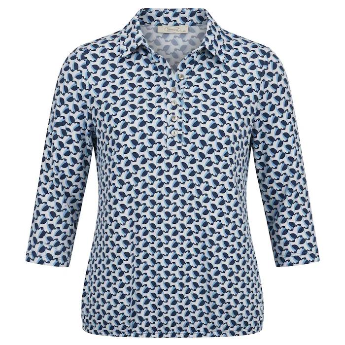 Sensia Poloshirt Blauw Dessin – Travelstof met 3/4 Mouw en Elastische Boord