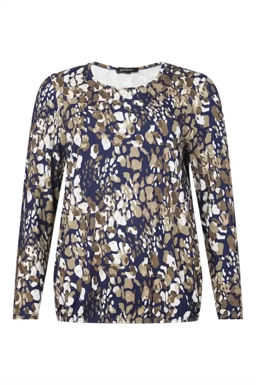 De Blouson Sunday Marine/Olijf is de perfecte aanvulling op uw garderobe als u op zoek bent naar een combinatie van comfort en stijl. Deze modieuze top met een speels vlekkenpatroon in marine,olijf, beige en wit brengt direct een frisse en eigentijdse uitstraling.