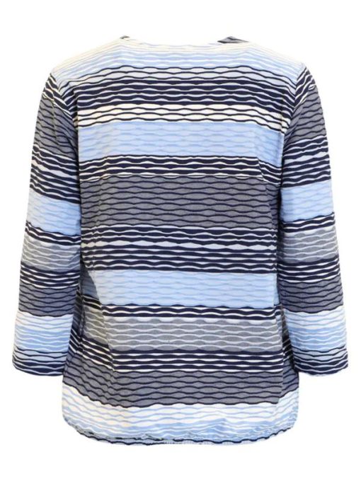 Brandtex Dames Blouson Blauw Gestreept – Driekwart Mouw – Elastische Boord