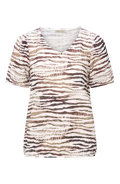 Dreamstar dames shirt model Jolly met zebra print in bruin en beige tinten, V-hals en elastische boord.