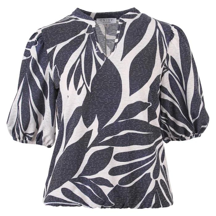 Enjoy Shirt Blauw Wit Gebloemd – Comfortabele Top met Korte Mouw