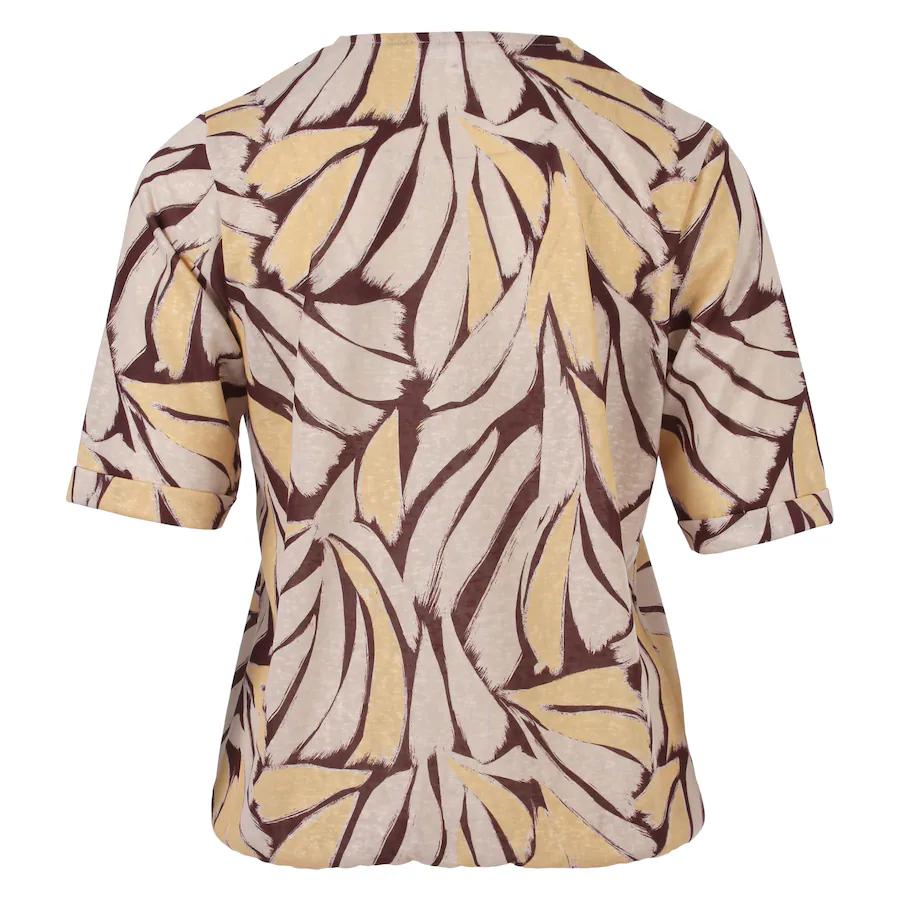 Enjoy Blouson Geel/Beige Grafische Print – Trendy Top met Elastische Boord
