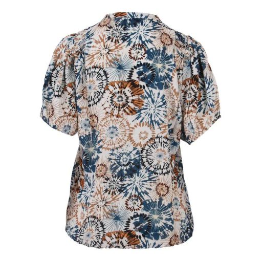 Enjoy Dames Blouse Shirt Blauw/Bruin – Mandala Print – Elastische Zoom