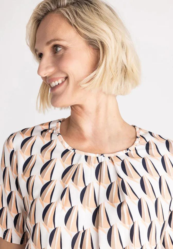 Frank Walder Blouson Marine/Beige Print – Ecovero Viscose met Elastische Zoom