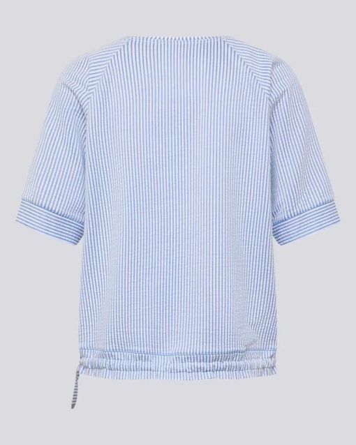 Deze stijlvolle blouson van Rabe is de ideale keuze voor dames die houden van een frisse, verzorgde look met een sportieve twist. Het shirt onderscheidt zich door het subtiele verticale streepdessin in lichtblauw en wit, wat zorgt voor een flatterend en verlengend effect. Dankzij de hoogwaardige katoenmix met een vleugje elastaan draagt de blouson heerlijk luchtig en beweegt hij comfortabel met u mee.