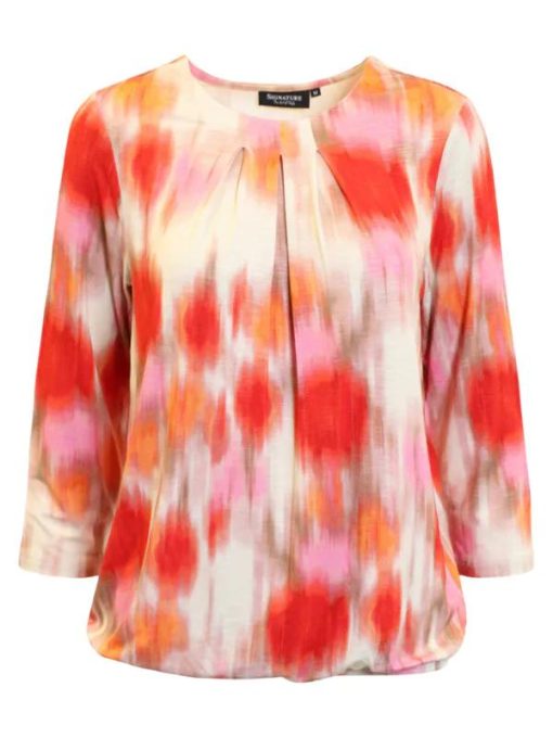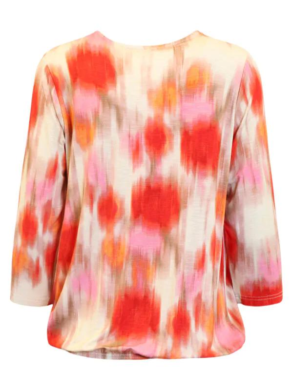Signature Dames Blouson Abstracte Print – Oranje & Roze – Driekwart Mouw – t/m 4XL