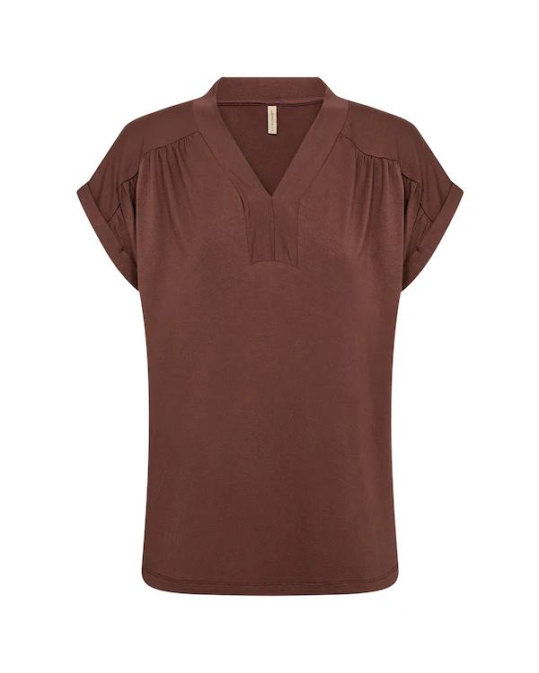 Bruin SoyaConcept Marica shirt met v-hals en korte mouwen van duurzaam Lyocell