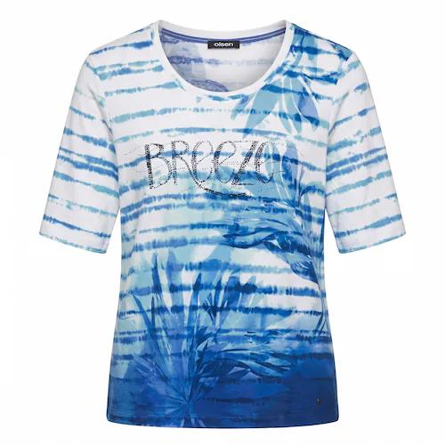 Verfijn uw look met dit stijlvolle shirt van Olsen, voorzien van een uniek geel en marine dessin. De ronde halslijn en driekwartsmouwen maken het een veelzijdige keuze voor dagelijks gebruik of speciale gelegenheden. Het speelse patroon voegt een modern accent toe, terwijl de comfortabele pasvorm u de hele dag stijlvol laat voelen.