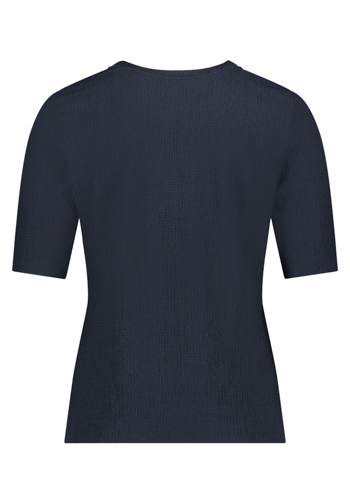 Kies voor tijdloze elegantie met dit diep marineblauwe shirt van Betty Barclay. Dit shirt bewijst dat een basic ook heel bijzonder kan zijn; de unieke crinkle-structuur geeft de stof een luxe dimensie en een moderne uitstraling. Dankzij de getailleerde pasvorm sluit het shirt prachtig aan op je silhouet, waardoor het de ideale partner is onder een blazer of op een zomerse witte broek.