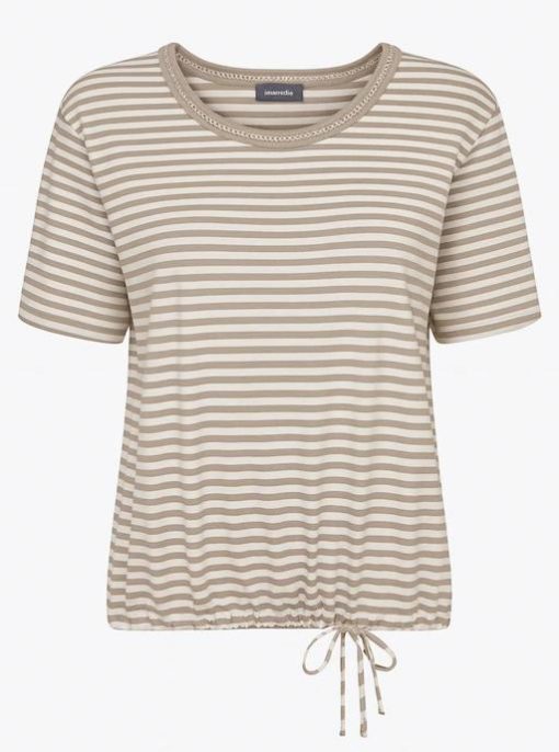 Marinello Shirt Beige Gestreep – Dames T-shirt met Strikdetail en Viscose Stretch