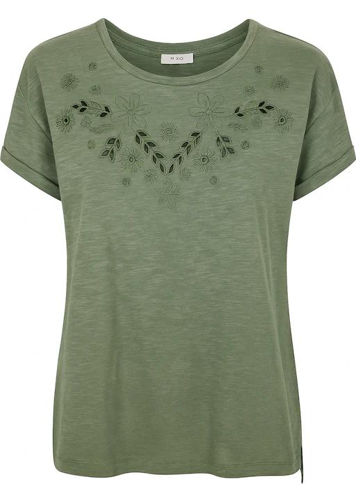 Marinello Shirt Thyme Groen – Effen Dames T-shirt met Broderie – 100% Organisch Katoen