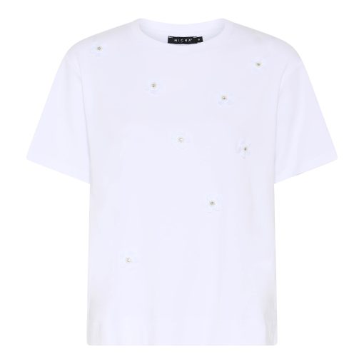Micha Shirt Wit – Romantische 3D Bloemen met Strass
