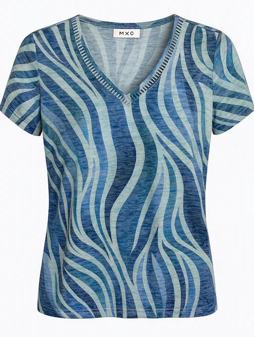 MXO Dames Shirt Blauw Groen – Zebra Print met V-hals en Kapmouw